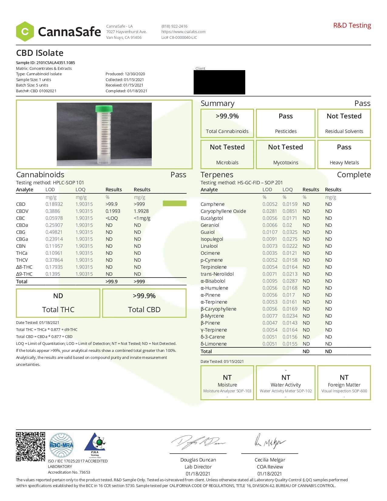 医療グレードのcGMP工場認定取得、米国農業法準拠、産業用ヘンプ栽培認可取得、カンナビノイド哲学博士による研究開発、トレーサビリティ生産管理